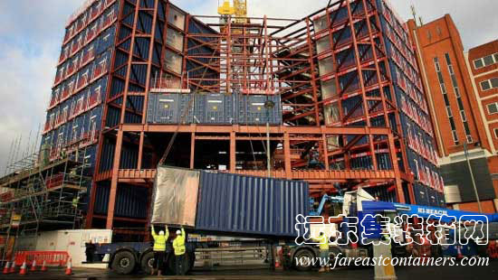 2008年年初,英国《金融时报》、路透社、中国中央电视台、新华社等媒体,都报道了英国经济型连锁酒店巨头Travelodge集团投资建造的“可回收式酒店”。据媒体报道,“可回收式酒店”的客房就是集装箱。将一个个内部全部装修成客房的“集装箱”模块从低到高如“堆积木”般一一码放起来,然后再用螺钉将其固定即可。这些“集装箱房屋”按设计堆放整齐,然后装上门窗,对其外立面稍加装饰和布置,“集装箱酒店”的外观便与普通酒店无异。据了解,“集装箱酒店”的建造材料可以回收再利用,一旦酒店将来“退休”,用于搭建客房的集装箱经拆卸,其优质钢材可以循环利用,符合环保理念。