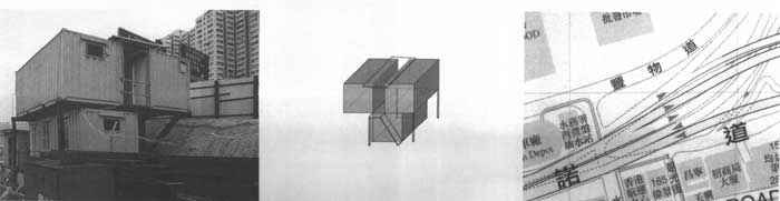 这个经销汽车的公司位于新界的八乡。支撑上层两个短集装箱的结构一端搁置在下层的长集装箱上,另一端搁置在两个柱子上。屋顶和挑台向外伸出颇大的距离,形成一个面向停车场的眺望平台。值得注意的是造型的几个对比关系:上下两组集装箱成真角关系,平台和屋顶的走向与楼梯成直角的关系。建筑的后面是一个大车棚,一端横跨在长集装箱上。